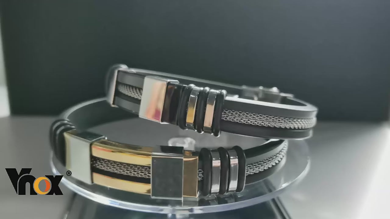 Capture attention with the eye-catching and durable Stainless-Steel men's bracelet from Vnox. Crafted with a combination of Grooved Rudder Silicone and a Mesh Link Insert, this bracelet merges style with durability seamlessly. The grooved rudder design adds a nautical flair, while the mesh link insert enhances its modern appeal. Perfect for everyday wear, it offers a comfortable fit and robust build, ensuring longevity and resilience. Whether for yourself or as a thoughtful gift, this bracelet not only complements casual and semi-formal attire but also reflects a sense of adventure and contemporary fashion. Elevate your accessory collection with the Vnox Stainless-Steel bracelet, designed to stand out and withstand the test of time.